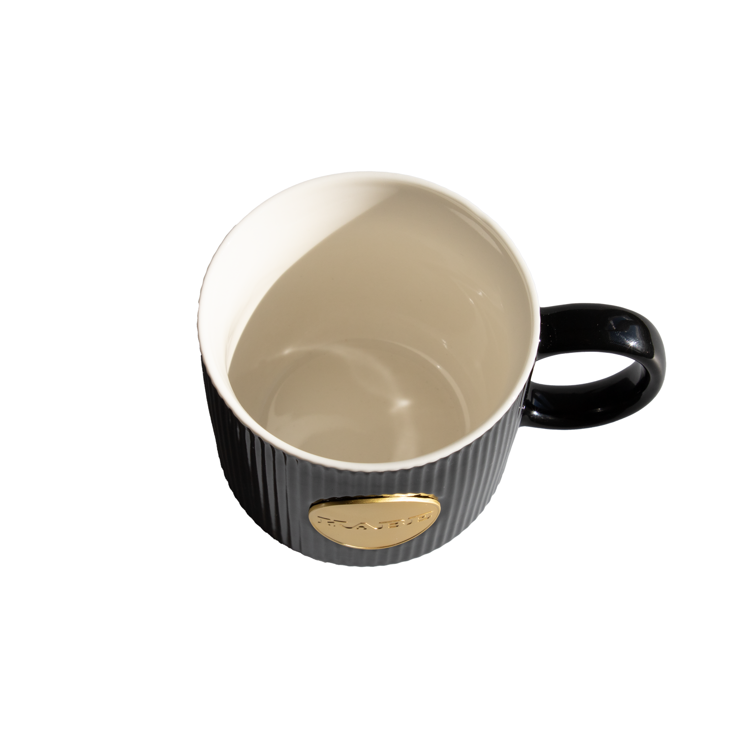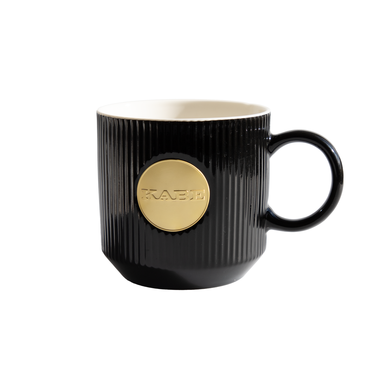 En elegant kaffemugg tillverkad av keramik med KABE-loggan av koppar.